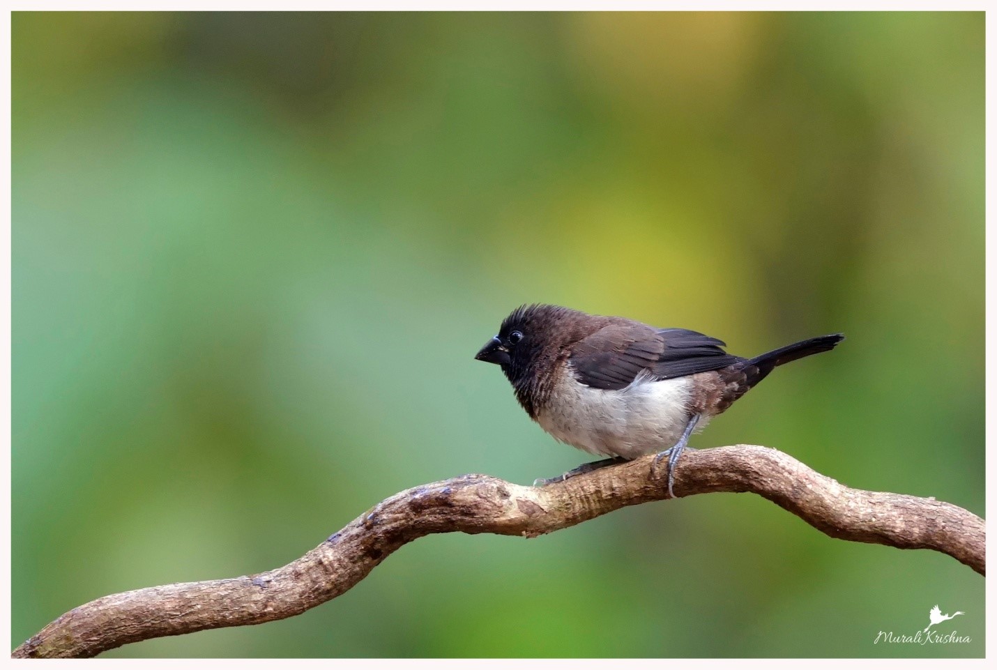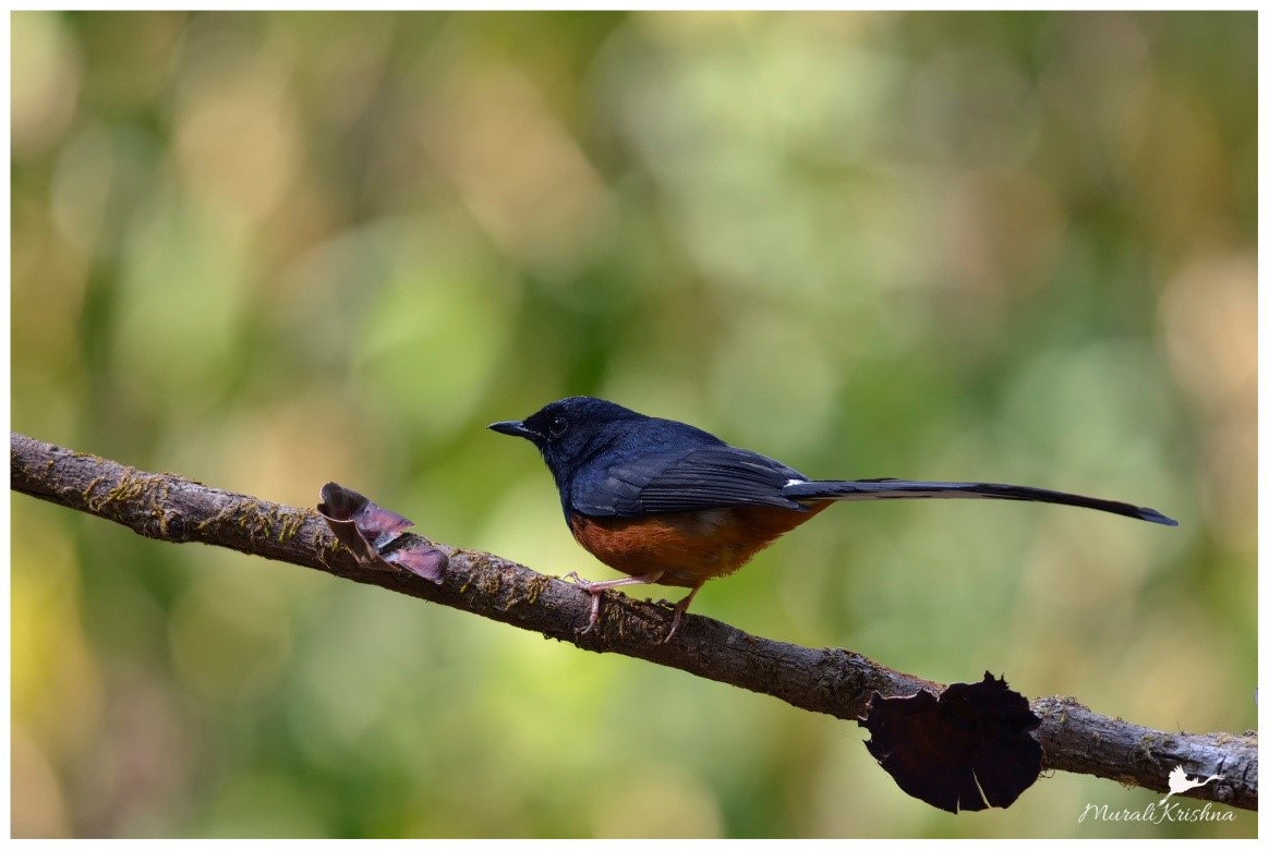 Native to densely vegetated habitats in the Indian Subcontinent and Southeast Asia, its popularity as a cage-bird and songster has led to it being introduced elsewhere. Males are glossy black with a chestnut belly and white feathers on the rump and outer tail. Females are more greyish-brown, and are typically shorter than males.